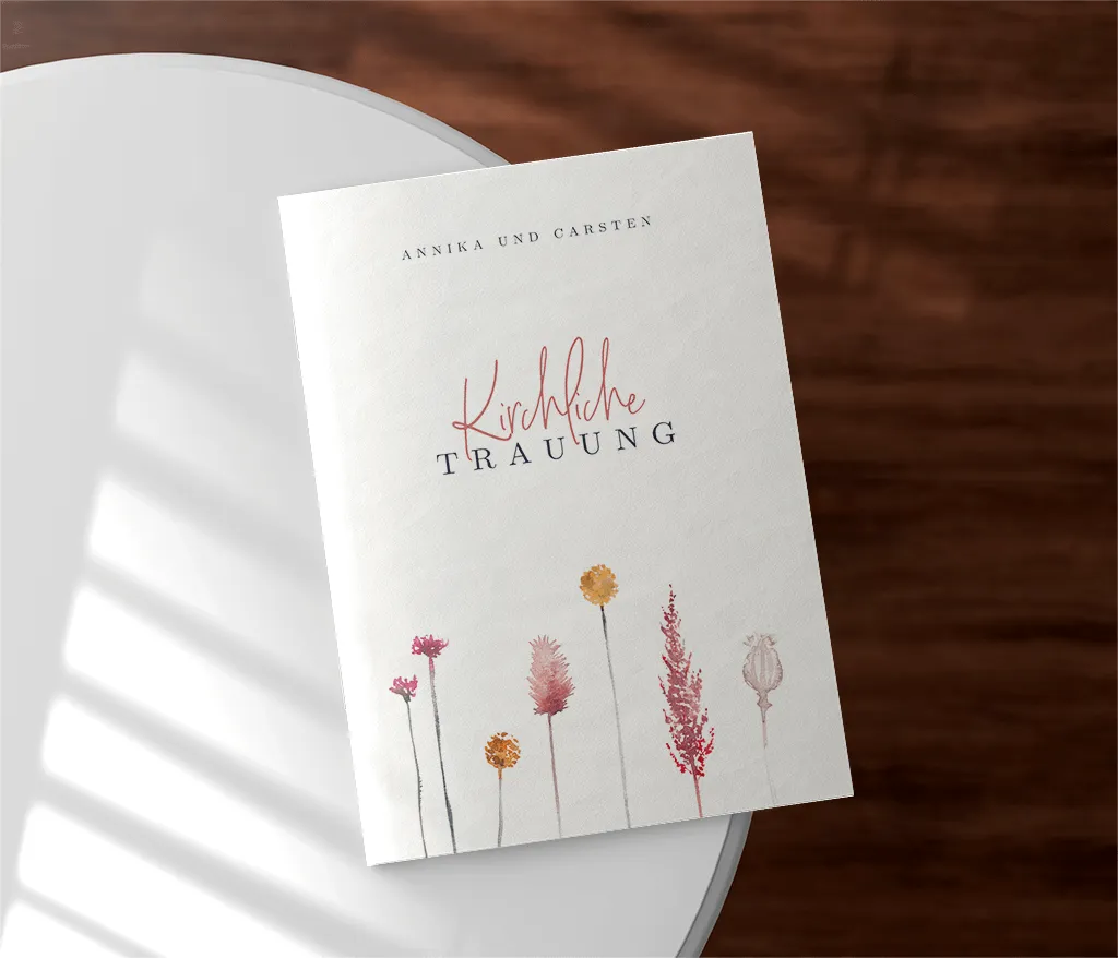 Das Kirchenheft wird durch zwei Heftklammern stabil zusammengehalten und kann sowohl auf Papier mit matter Oberfläche (Holzfreies Papier 170g/m²) als auch auf Papier mit glattem, leicht glänzendem Papier (Seidenglanz 170g/m²) gedruckt werden. Du kannst dabei zwischen einem 4-, 8- oder 12-seitigen Heft wählen.