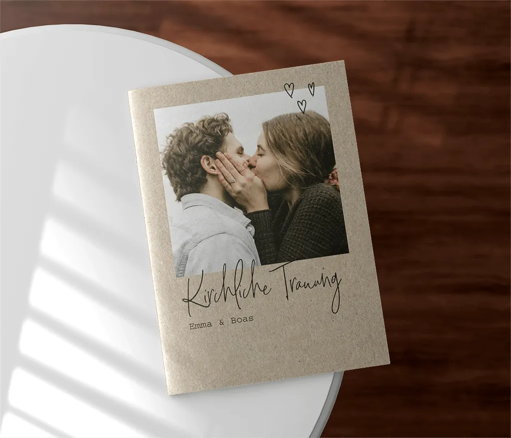 Das Kirchenheft wird durch zwei Heftklammern stabil zusammengehalten und kann sowohl auf Papier mit matter Oberfläche (Holzfreies Papier 170g/m²) als auch auf Papier mit glattem, leicht glänzendem Papier (Seidenglanz 170g/m²) gedruckt werden. Du kannst dabei zwischen einem 4-, 8- oder 12-seitigen Heft wählen.