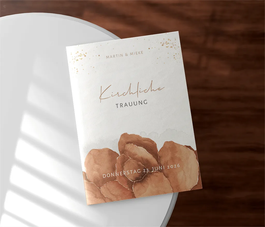Das Kirchenheft wird durch zwei Heftklammern stabil zusammengehalten und kann sowohl auf Papier mit matter Oberfläche (Holzfreies Papier 170g/m²) als auch auf Papier mit glattem, leicht glänzendem Papier (Seidenglanz 170g/m²) gedruckt werden. Du kannst dabei zwischen einem 4-, 8- oder 12-seitigen Heft wählen.