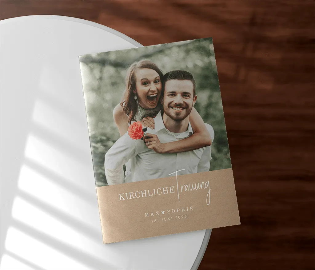 Das Kirchenheft wird durch zwei Heftklammern stabil zusammengehalten und kann sowohl auf Papier mit matter Oberfläche (Holzfreies Papier 170g/m²) als auch auf Papier mit glattem, leicht glänzendem Papier (Seidenglanz 170g/m²) gedruckt werden. Du kannst dabei zwischen einem 4-, 8- oder 12-seitigen Heft wählen.