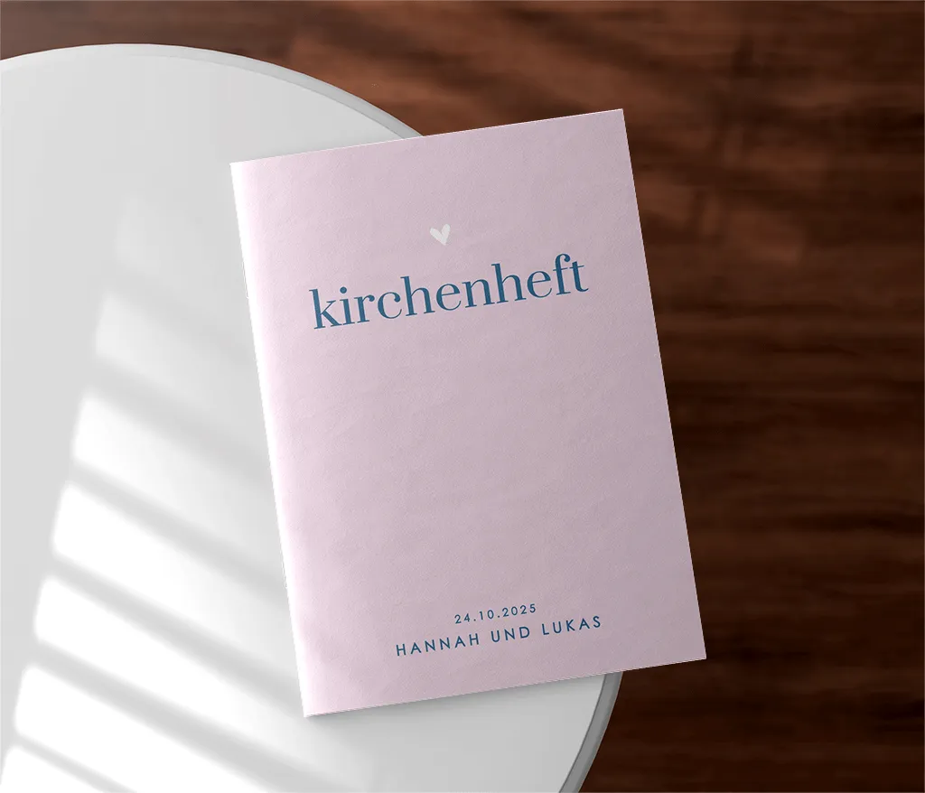 Das Kirchenheft wird durch zwei Heftklammern stabil zusammengehalten und kann sowohl auf Papier mit matter Oberfläche (Holzfreies Papier 170g/m²) als auch auf Papier mit glattem, leicht glänzendem Papier (Seidenglanz 170g/m²) gedruckt werden. Du kannst dabei zwischen einem 4-, 8- oder 12-seitigen Heft wählen.