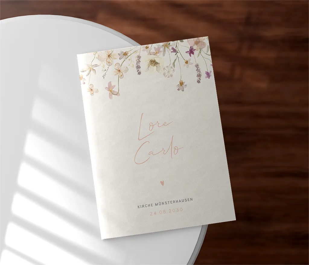 Das Kirchenheft wird durch zwei Heftklammern stabil zusammengehalten und kann sowohl auf Papier mit matter Oberfläche (Holzfreies Papier 170g/m²) als auch auf Papier mit glattem, leicht glänzendem Papier (Seidenglanz 170g/m²) gedruckt werden. Du kannst dabei zwischen einem 4-, 8- oder 12-seitigen Heft wählen.