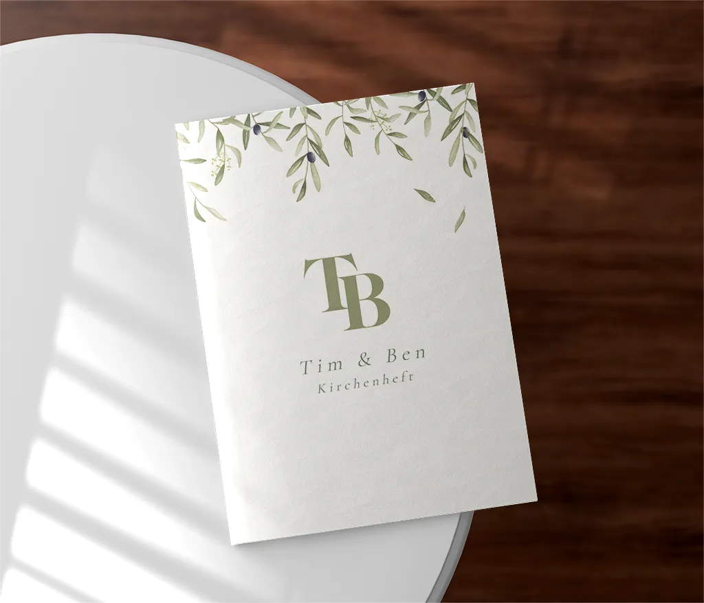Das Kirchenheft wird durch zwei Heftklammern stabil zusammengehalten und kann sowohl auf Papier mit matter Oberfläche (Holzfreies Papier 170g/m²) als auch auf Papier mit glattem, leicht glänzendem Papier (Seidenglanz 170g/m²) gedruckt werden. Du kannst dabei zwischen einem 4-, 8- oder 12-seitigen Heft wählen.