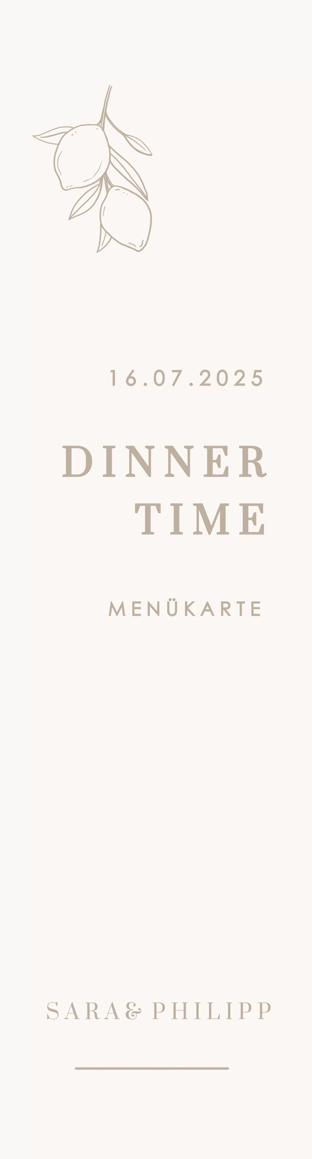 Mediterrane Menükarte in Lesezeichen-Form mit Zitronen