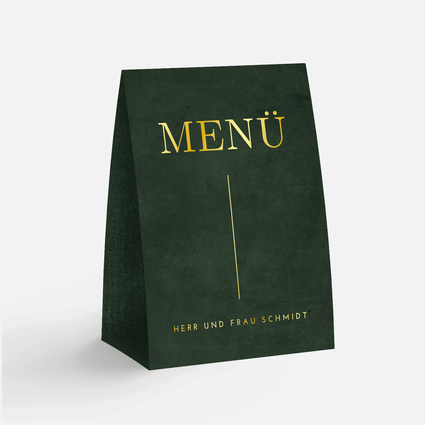 Aufsteller Menükarte mit Goldfolie und dunkelgrünem Hintergrund