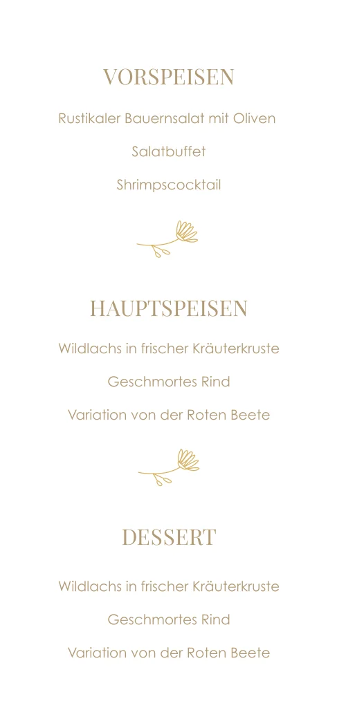 Goldfolie Menükarte mit goldenen Blumen