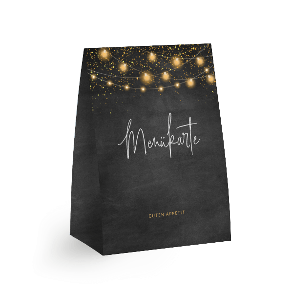 Menükarte zum Aufstellen mit LichterkettenMelde dich für unseren Newsletter an und profitiere von exklusiven Angeboten, kreativen Ideen und Neuigkeiten aus unserer Produktwelt. Als Dankeschön für deine Anmeldung schenken wir dir einen kostenlosen Probedruck deiner Karte.