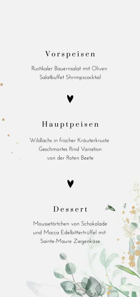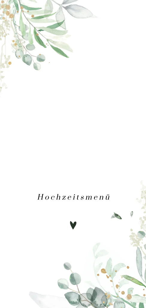 Menükarte mit grünen Zweigen und schwarzem Hochglanz