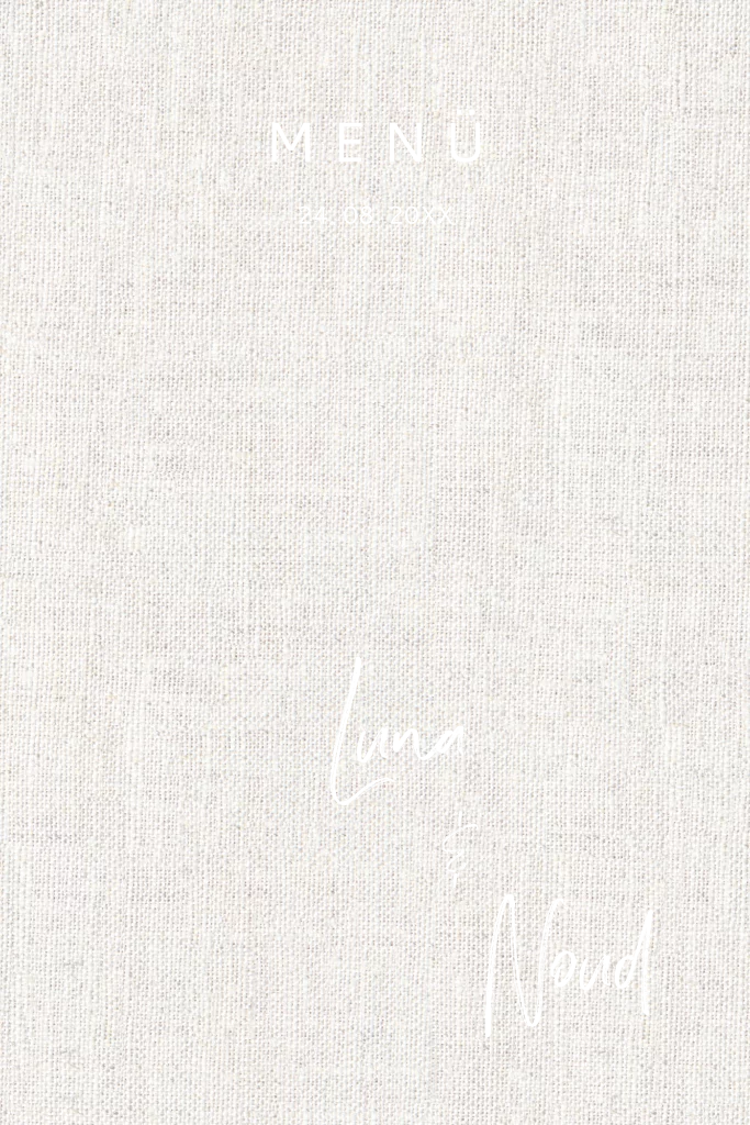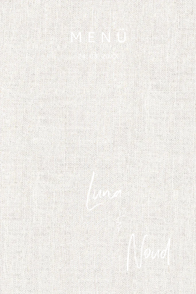 Menükarte mit Namen und Text aus Roségoldfolie auf einem Hintergrund in Leinenoptik, passend zum Stil der restlichen Hochzeitspapeterie.Dazu empfehlen wir stylische Kartenhalter aus echtem Holz, um die Karte in voller Pracht zu präsentieren. Hier gelangst du direkt zur Auswahl.