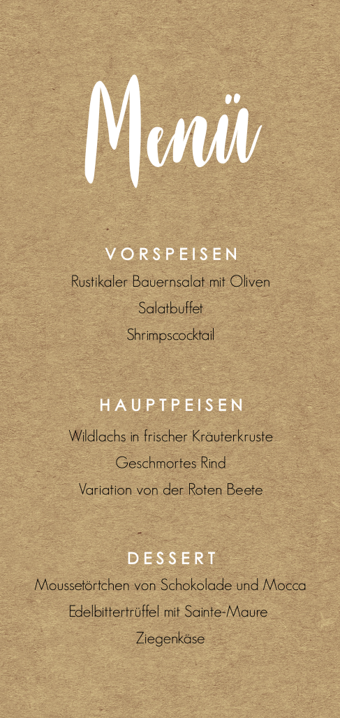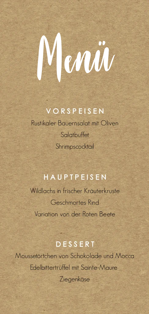 Dazu empfehlen wir stylische Kartenhalter aus echtem Holz, um die Karte in voller Pracht zu präsentieren. Hier gelangst du direkt zur Auswahl.