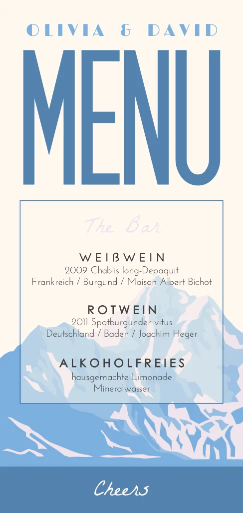 Menükarte im Retro Filmplakat Look mit BergmotivMelde dich für unseren Newsletter an und profitiere von exklusiven Angeboten, kreativen Ideen und Neuigkeiten aus unserer Produktwelt. Als Dankeschön für deine Anmeldung schenken wir dir einen kostenlosen Probedruck deiner Karte.