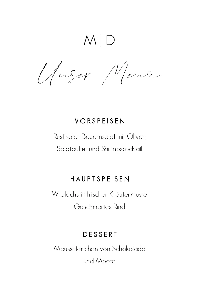 Menükarte in schwarz-weiß mit Initialen
