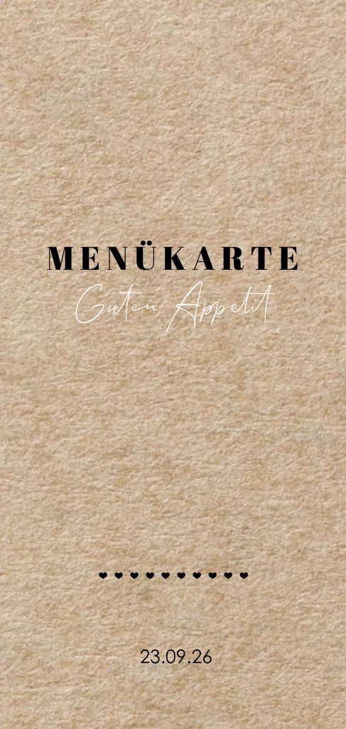 Neben dem reinen Informationswert ist eine Menükarte auch Teil der Dekoration. Wenn ihr im Landhausstil, modernem Naturstil oder im Vintagestil heiratet, passt diese Menükarte mit ihrem natürlichen Look genau dazu.Dazu empfehlen wir stylische Kartenhalter aus echtem Holz, um die Karte in voller Pracht zu präsentieren. Hier gelangst du direkt zur Auswahl.