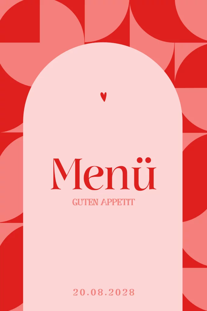Moderne Menükarte zur Hochzeit mit Herzen und geometrischen FigurenMelde dich für unseren Newsletter an und profitiere von exklusiven Angeboten, kreativen Ideen und Neuigkeiten aus unserer Produktwelt. Als Dankeschön für deine Anmeldung schenken wir dir einen kostenlosen Probedruck deiner Karte.
