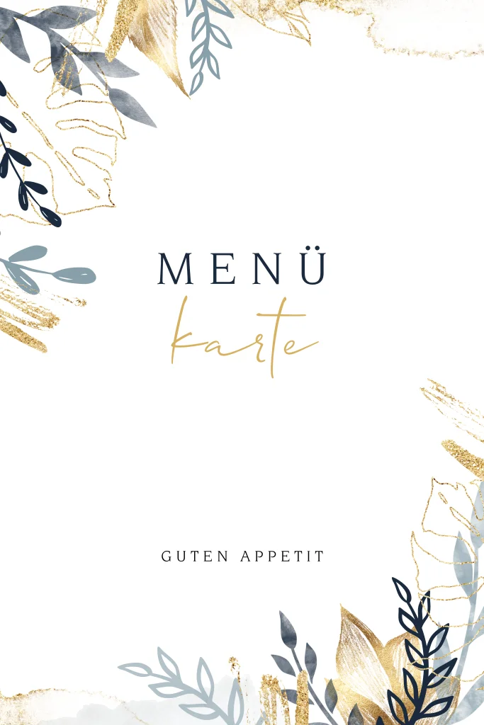 Die perfekte Ergänzung zu eurer Hochzeitstafel: Stilvolle Menükarte mit hippen Elementen im Gold-Look.Das Design der von dir gewählten Karte wurde automatisch in andere Formate umgestellt. Wähle einfach deinen Wunschformat aus und platziere alle Texte und Elemente an der richtigen Stelle im Editor. Du hast Fragen oder dein Favorit steht nicht zur Auswahl? Dann kontaktiere uns bitte und wir werden uns gemeinsam darum kümmern!