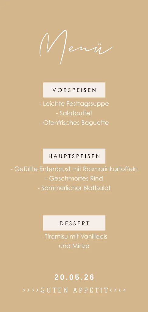 Dazu empfehlen wir stylische Kartenhalter aus echtem Holz, um die Karte in voller Pracht zu präsentieren. Hier gelangst du direkt zur Auswahl.