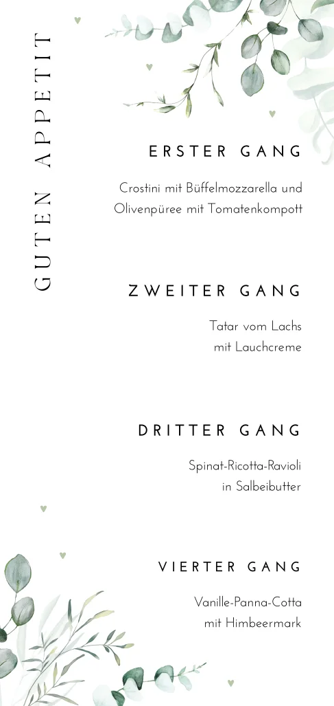 Schöne Menükarte mit Eukalyptus im Greenery-Look