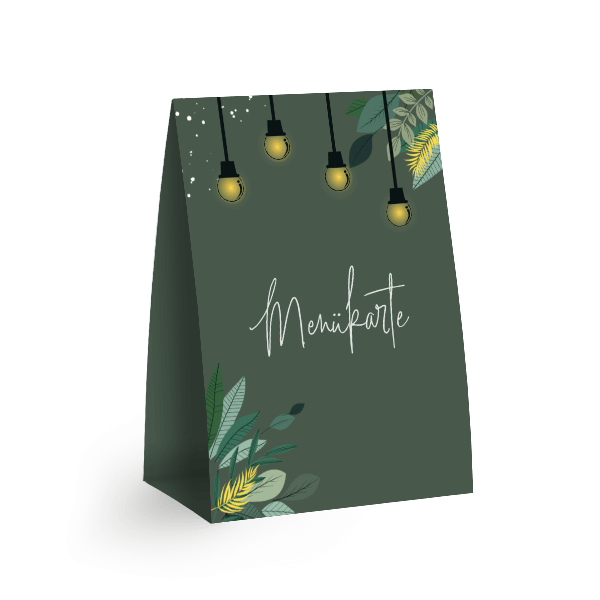 Sommerliche Menükarte Aufsteller mit Lichterkette und grünen ZweigenMelde dich für unseren Newsletter an und entdecke exklusive Angebote, kreative Inspirationen und spannende Neuigkeiten aus unserer Produktwelt. Als Dankeschön erhältst du 5 € Rabatt auf deine nächste Bestellung.