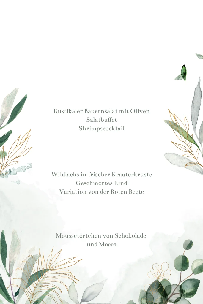Stilvolle Speisekarte mit grünen Aquarellzweigen