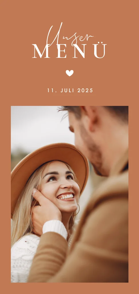 Das Menüheft bzw. die Menükarte auf dem feierlich gedeckten Tisch lässt Deine Gäste von Herzen zugreifen. Neben den Tischkarten sind die Menühefte der wichtigste Teil der Hochzeitspapeterie für die Feierlichkeiten nach der Trauung.Dazu empfehlen wir stylische Kartenhalter aus echtem Holz, um die Karte in voller Pracht zu präsentieren. Hier gelangst du direkt zur Auswahl.