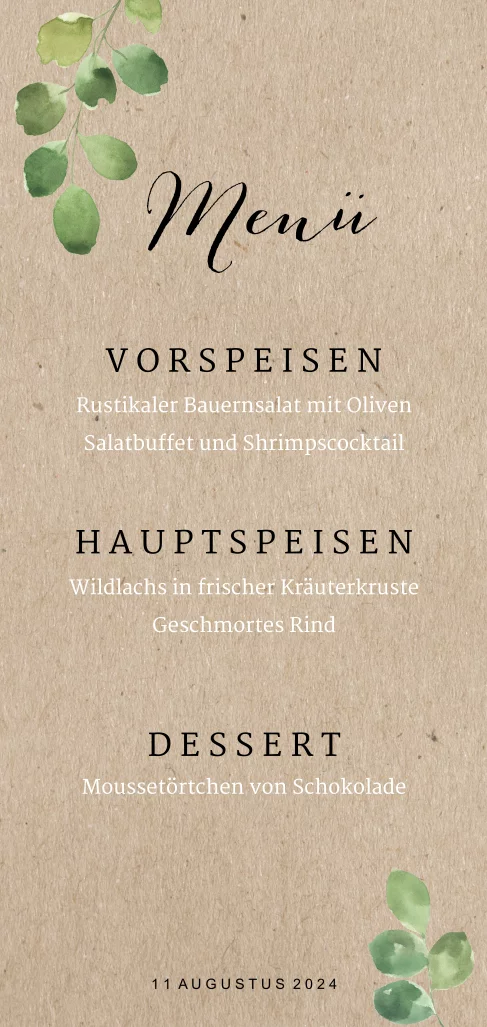Dazu empfehlen wir stylische Kartenhalter aus echtem Holz, um die Karte in voller Pracht zu präsentieren. Hier gelangst du direkt zur Auswahl.