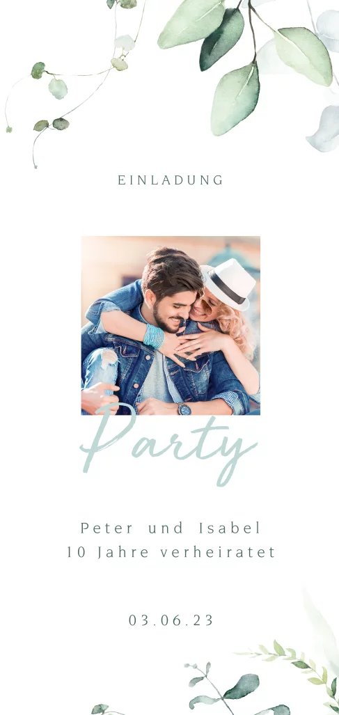Einladung zum 10-jährigen Jubiläum mit Foto und Eukalyptuszweigen