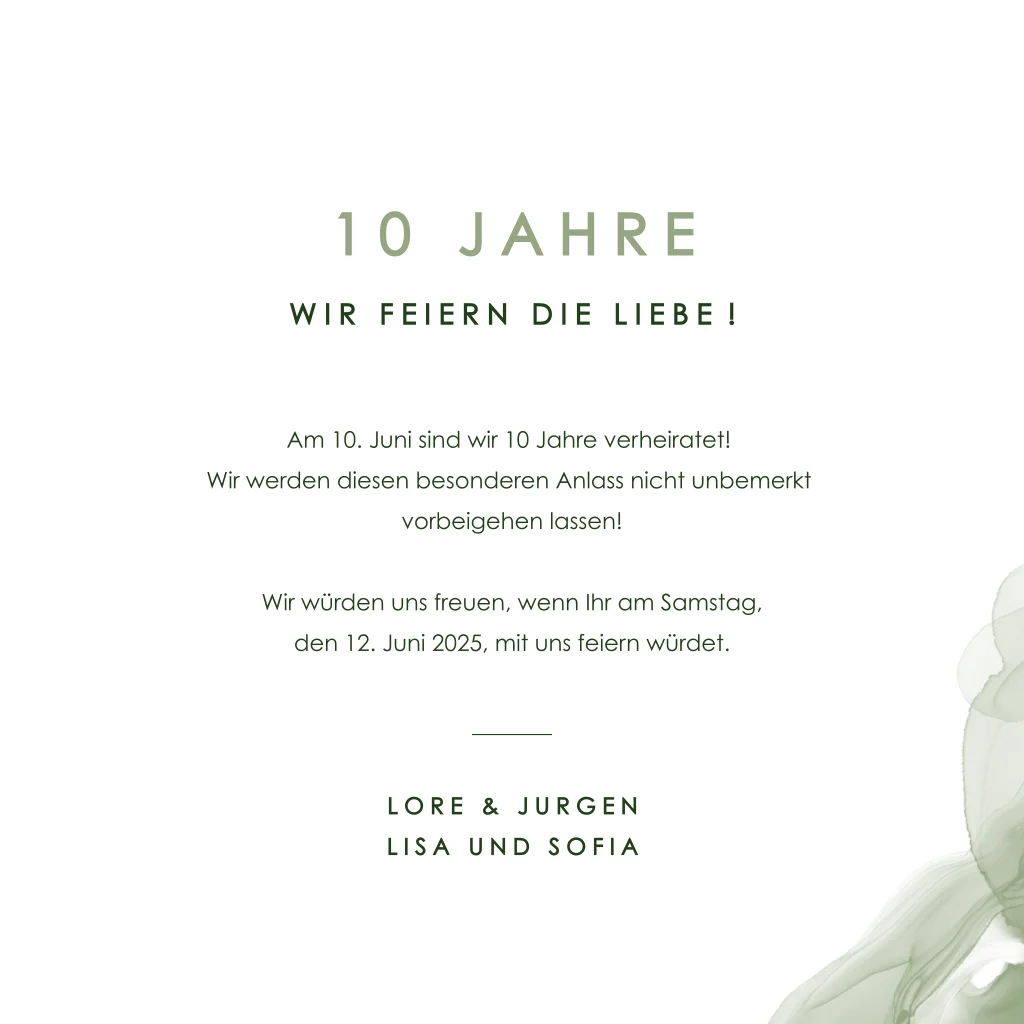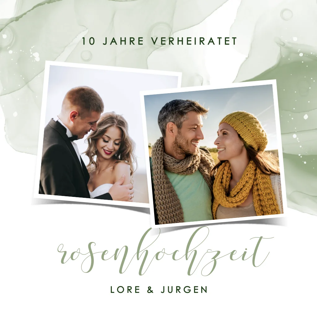 Einladung zur Rosenhochzeit mit Fotos und grüne Wasserfarbe