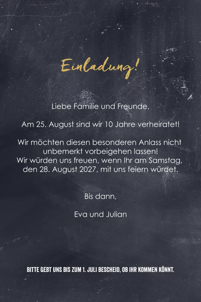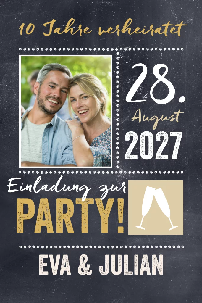 Moderne Einladungskarte zur Rosenhochzeit mit Sektgläsern und eigenem Foto