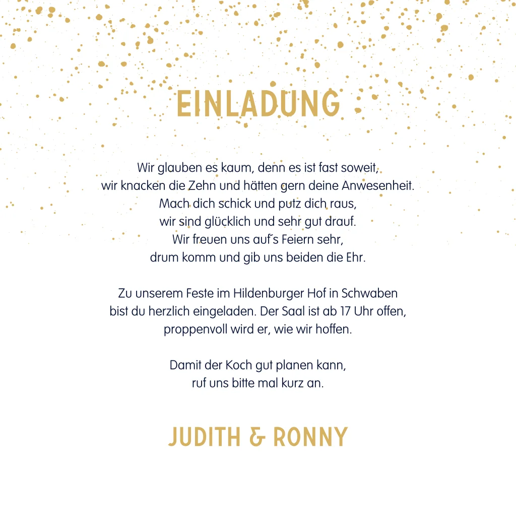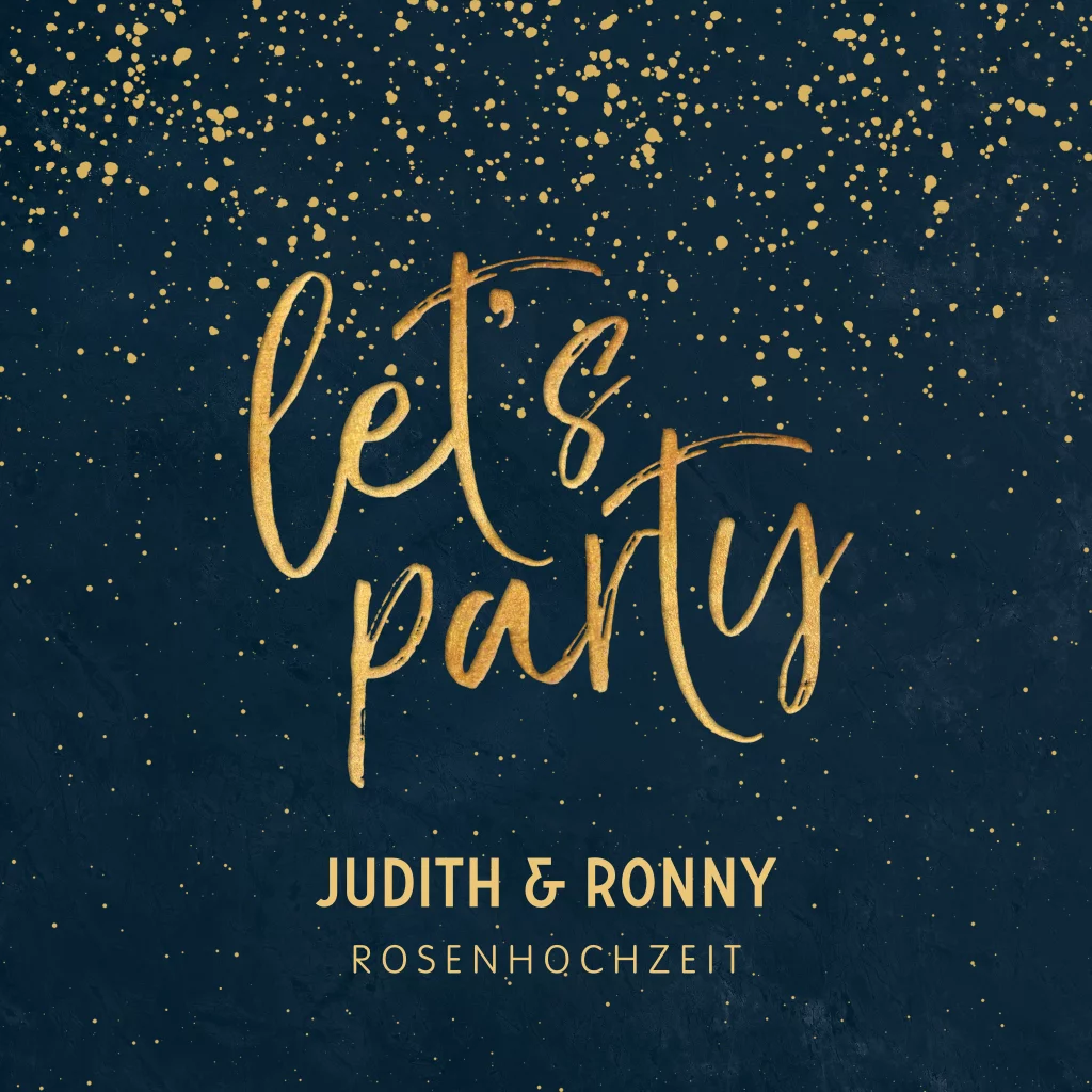 Moderne Einladung zur Rosenhochzeit in Blau/Gold