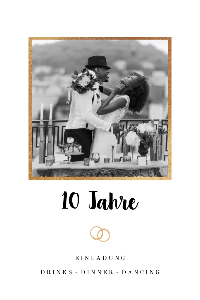 Schlichte EInladung zur Rosenhochzeit mit eigenem Bild und Eheringen