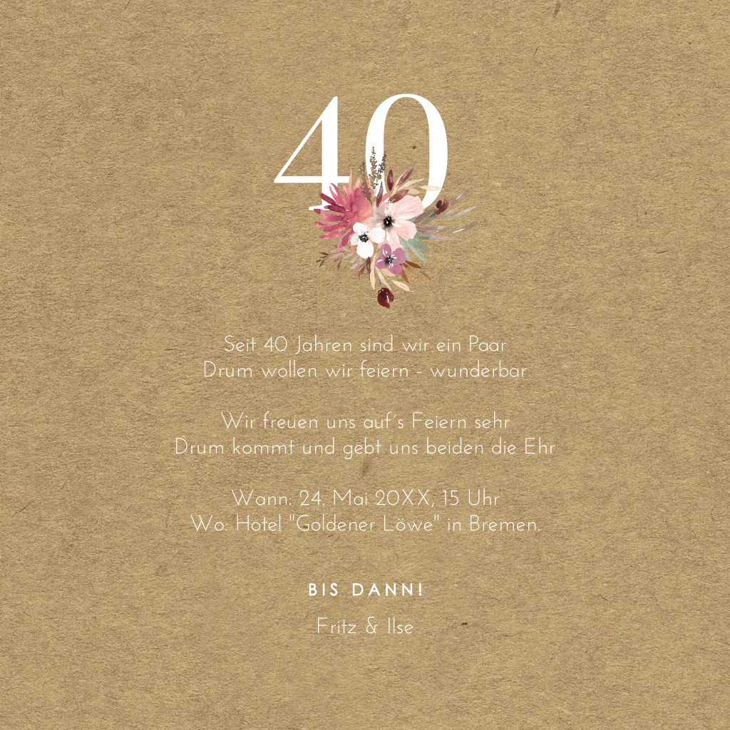 Einladung zur Rubinhochzeit im Beigeton mit Foto und hübschen Blumen