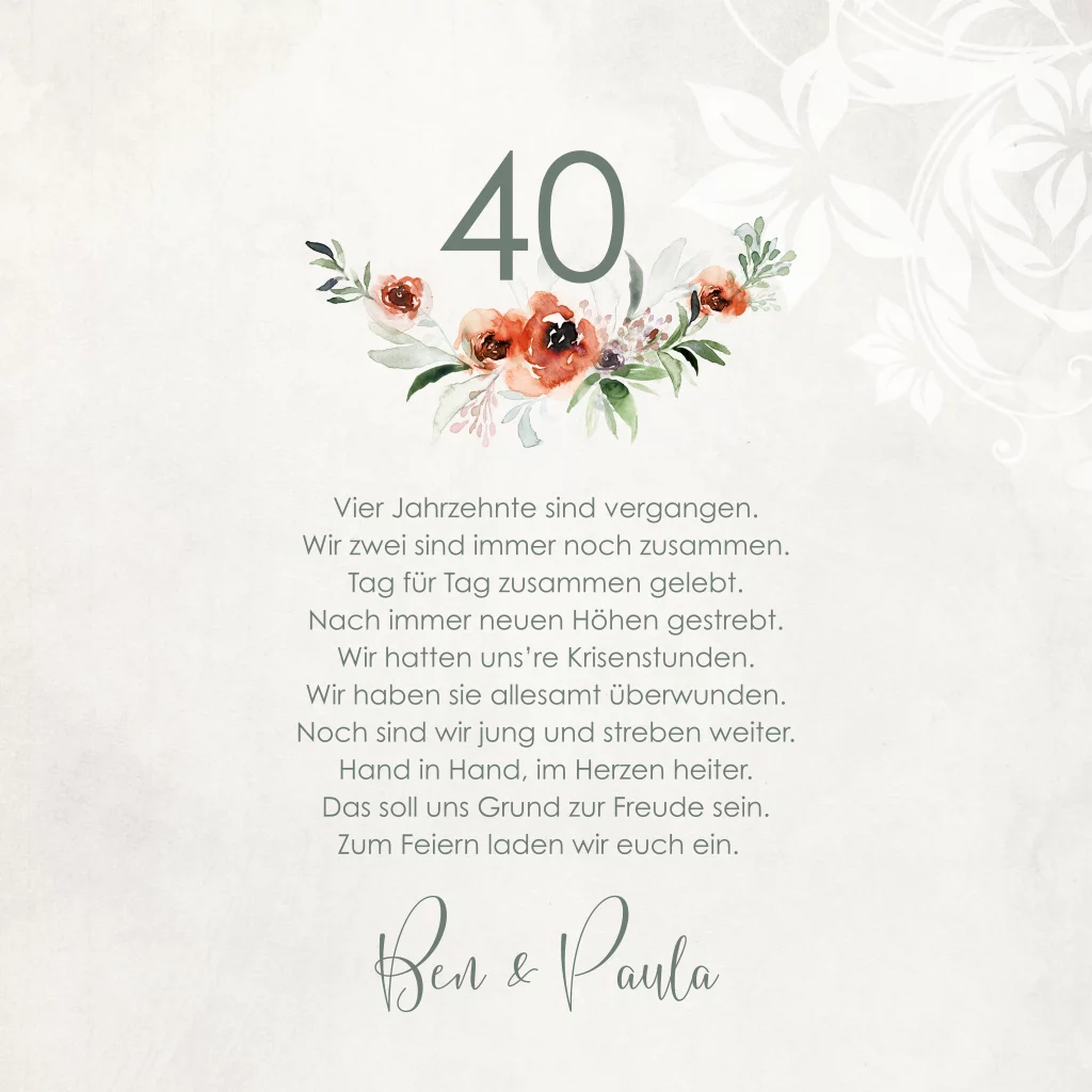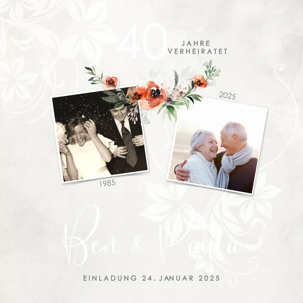Klassische Einladung zur Rubinhochzeit mit Fotos und Goldfolie