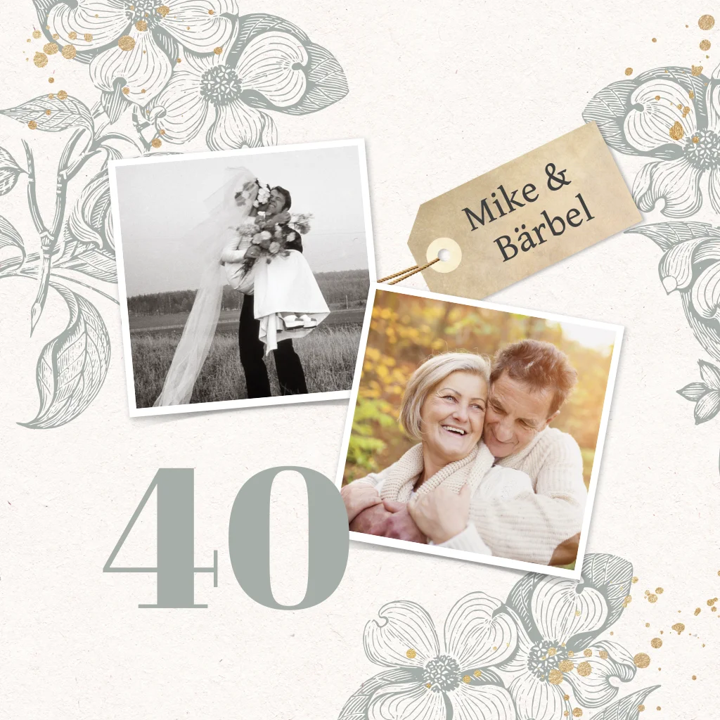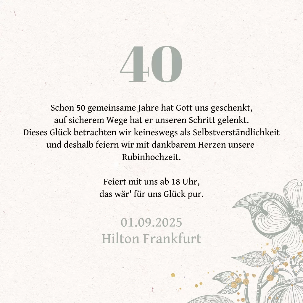 Klassische Einladung zur Rubinhochzeit mit Zweigen und Foto