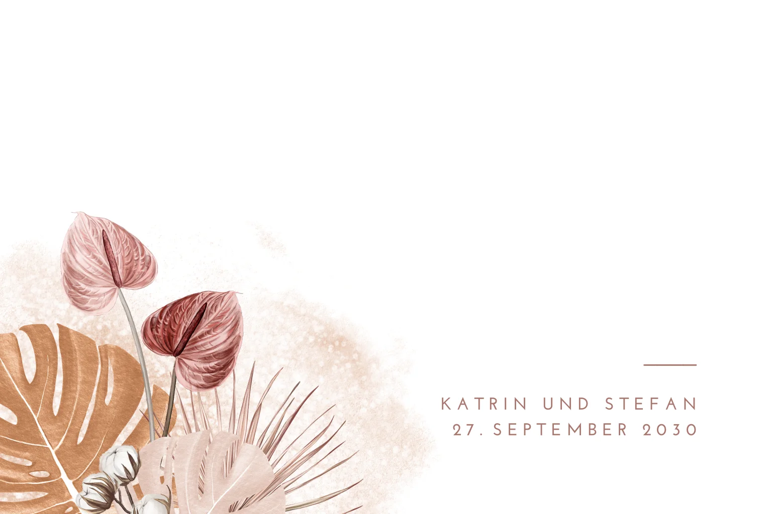 Ästhetische Save-the-date mit bronzefarbenen Blättern