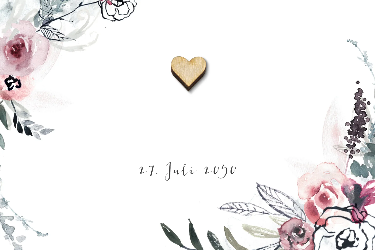 Das Holzelement auf dieser Karte dient als Vorschaubeispiel und wird nicht gedruckt. Du hast die Möglichkeit, an dieser Stelle selbst eine echte Holzform auf der Karte anzubringen. Wie erhälst du die Holzelemente?Sieh dir auch die dazugehörige Hochzeitskarte, Menükarte und Dankeskarte an.