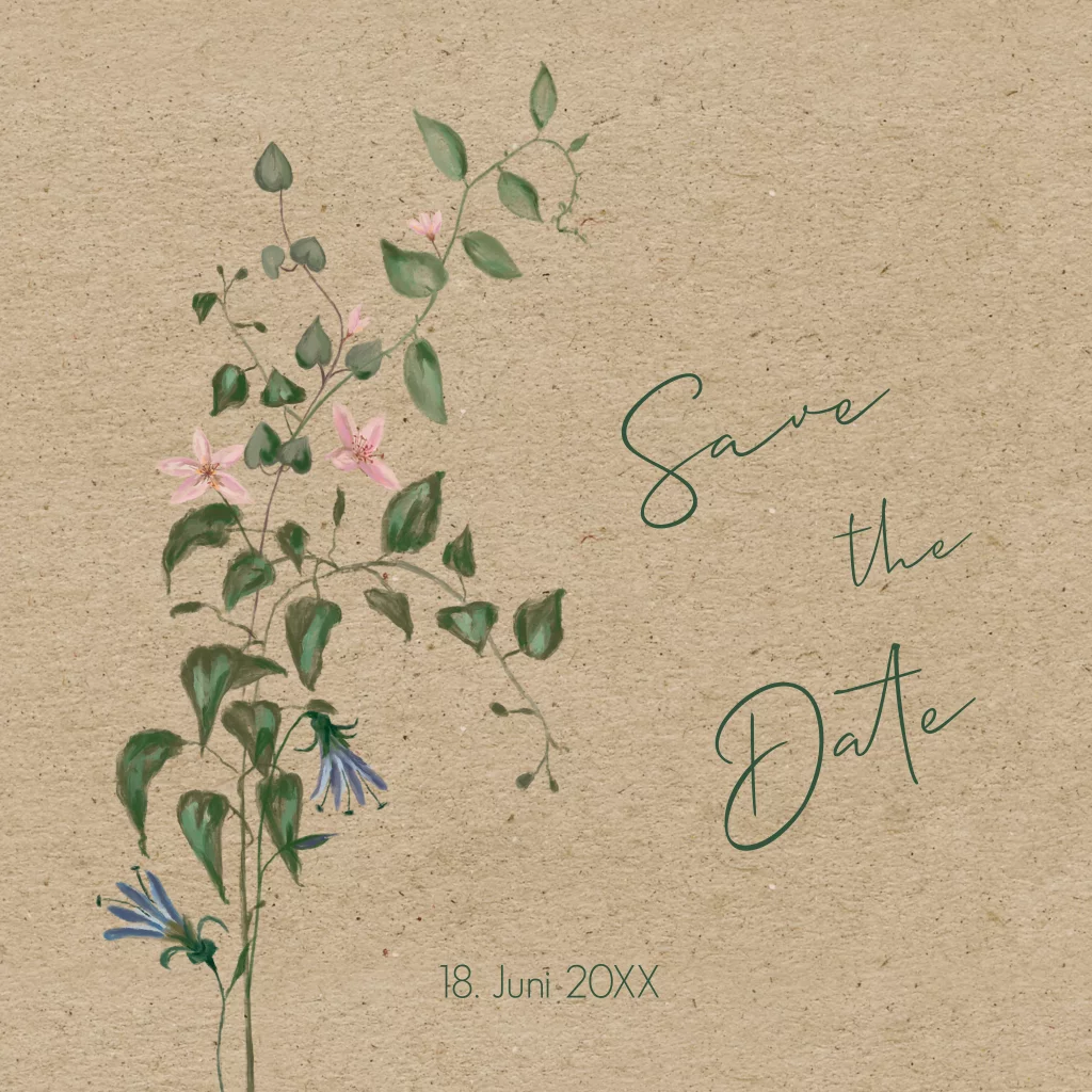 Save-the-Date Karte mit Kraft-Look mit eleganten Blumen