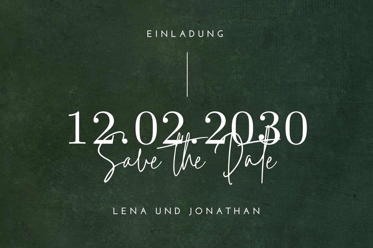 Goldfolie Save the date Karte mit dunkelgrünem Hintergrund