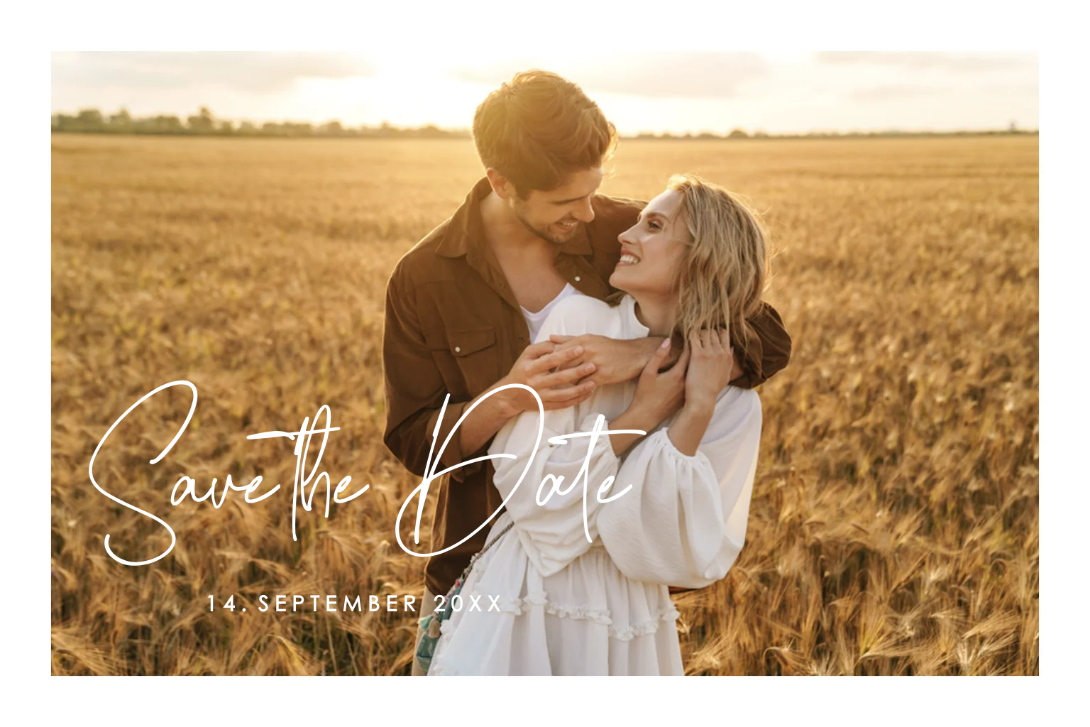 Macht eure Liebsten aufmerksam auf euren grossen Tag mit einer schicken Karte, auf der ihr strahlt und die ihr veredelt mit Goldfolie.Durch den Zuschnitt der Karten können 1-3mm Breitenunterschied (links/rechts und oben/unten) am Rahmen auftreten. Tipp: Gestalte den Rand so groß wie möglich, damit dieser mögliche Unterschied nicht auffällt.