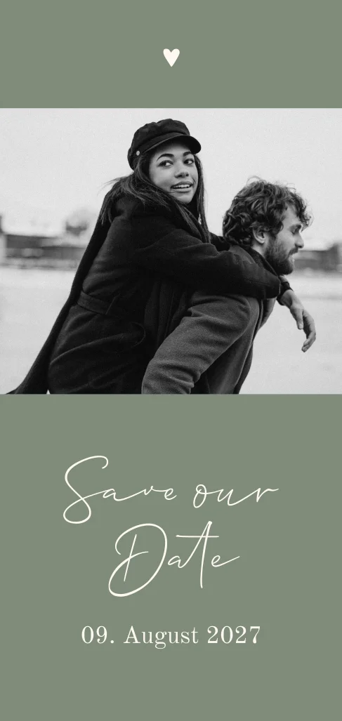Grüne minimalistische Save-the-date-Karte mit Foto