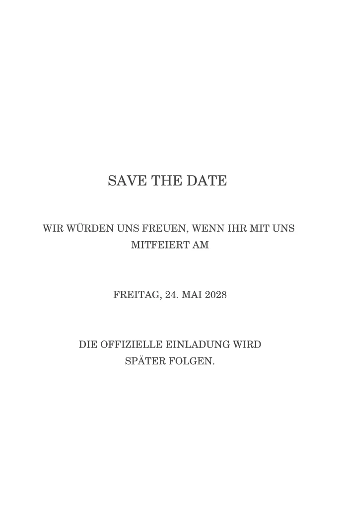 Das Design der von dir gewählten Karte wurde automatisch in andere Formate umgestellt. Wähle einfach deinen Wunschformat aus und platziere alle Texte und Elemente an der richtigen Stelle im Editor. Du hast Fragen oder dein Favorit steht nicht zur Auswahl? Dann kontaktiere uns bitte und wir werden uns gemeinsam darum kümmern!