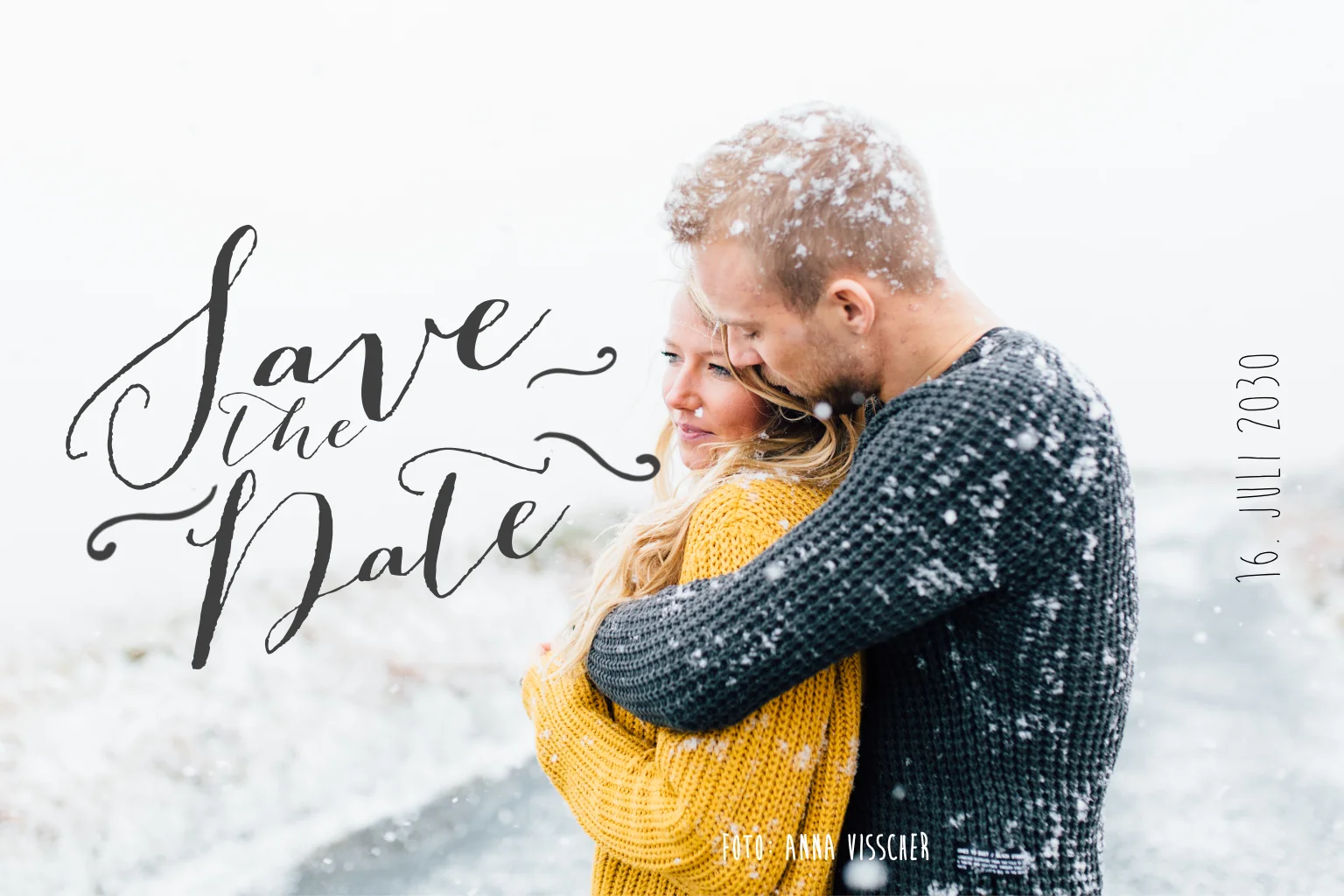 Nehmen Sie Ihr schönstes Foto und platzieren Sie es als Hintergrund auf die trendy Save-the-Date-Karte. Lassen Sie Familie und Freunde schnell das Datum Ihres großen Tages wissen!