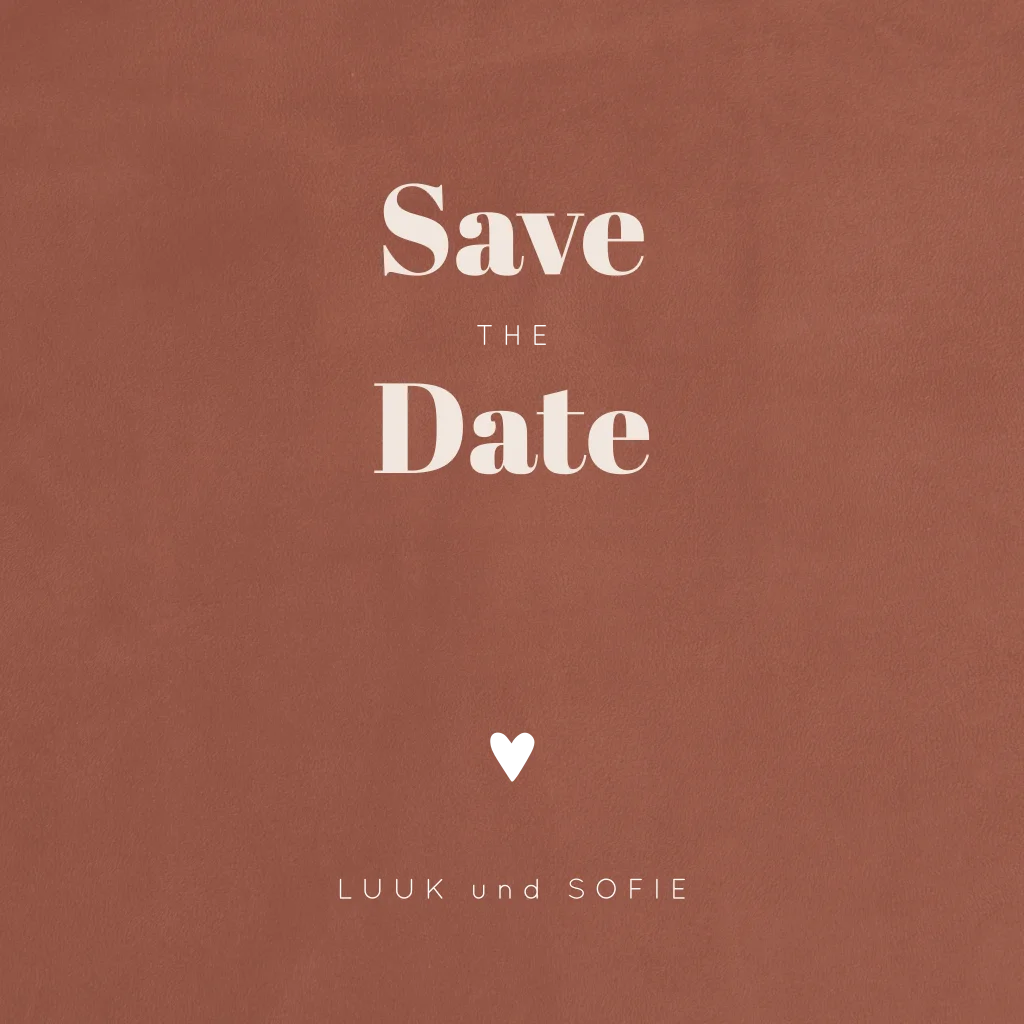 Mit dieser schicken Save-the-Date Karte in Braun mit edler Roségoldfolie stimmt ihr eure Gäste stilvoll auf die bevorstehende Hochzeit ein. Doppelseitig, quadratisch, praktisch.Bei quadratische Karten fällt ggf. ein anderes Briefporto an. Alle Infos findest du auf der Website der Deutschen Post. Zu diesem Format erhältst du Umschläge in der Größe 14x12,5 cm. Format ändern ist möglich.