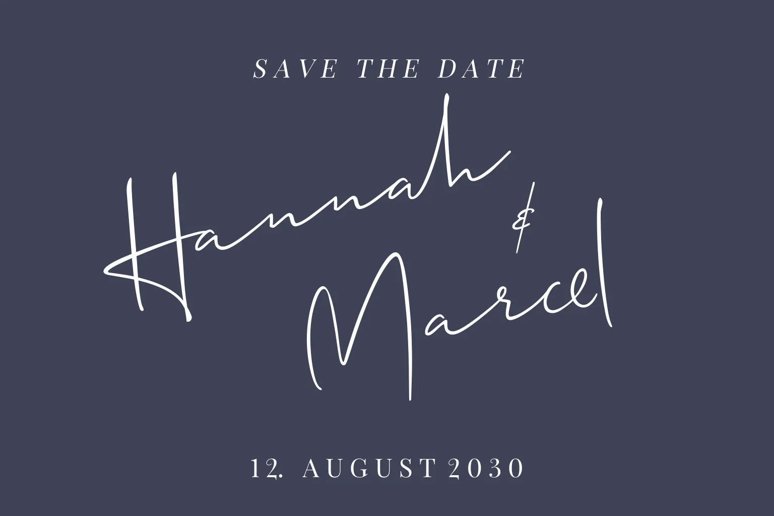 Moderne Save-the-Date-Karte mit lustiger Typografie auf Blau