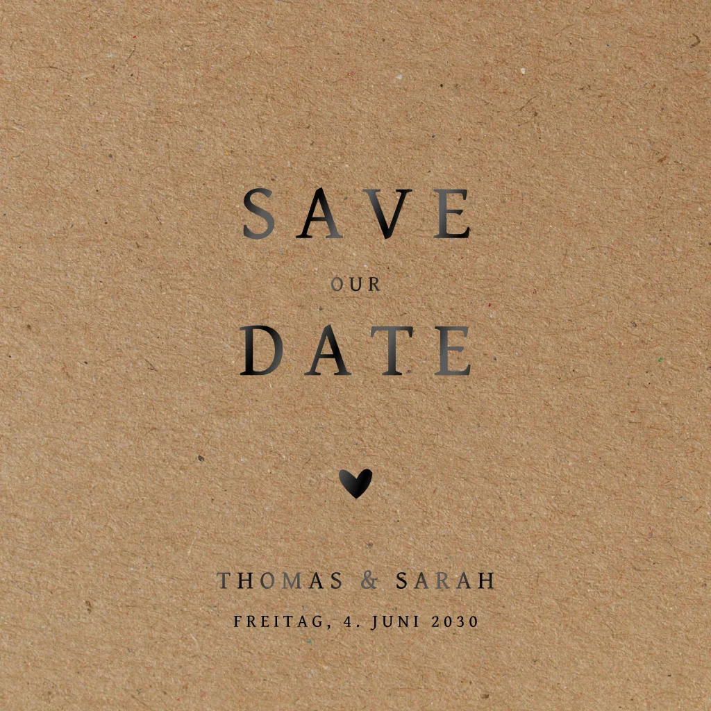 Hochzeitspapeterie auf Vintage Kraftpapier besticht durch einen trendigen Designkarton im rustic Kraftpapier-Look und ist mit modernen Schriftzügen bestückt absolut im Trend. Die doppelseitige Karte bietet genug Platz für die ersten Infos.Bei quadratische Karten fällt ggf. ein anderes Briefporto an. Alle Infos findest du auf der Website der Deutschen Post. Zu diesem Format erhältst du Umschläge in der Größe 14x12,5 cm. Format ändern ist möglich.