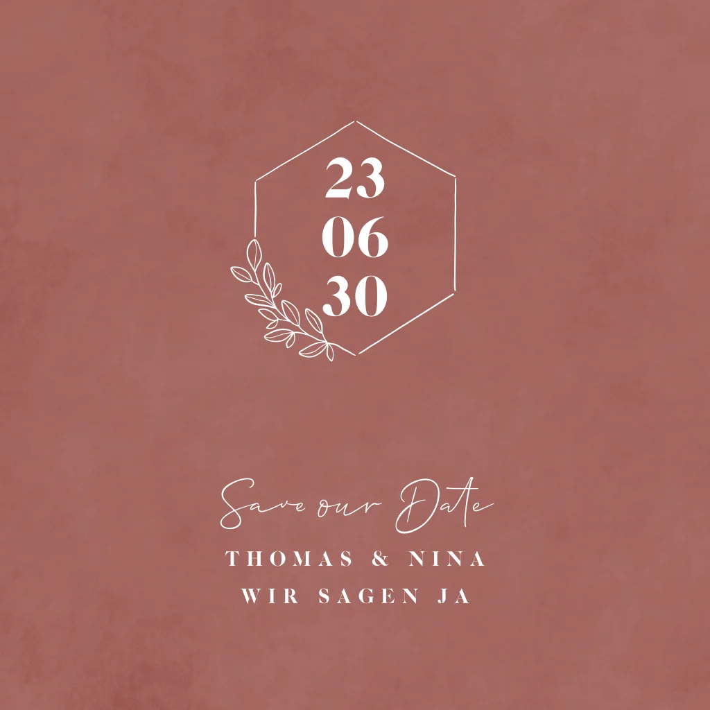 Eine selbst gestaltete Save-the-Date Karte ist der vielleicht wichtigste Schritt nach dem Heiratsantrag. Sie stimmt Eure Gäste auf die Hochzeit ein, gibt einen Vorgeschmack auf Stil und Thema und sorgt vor allem für eines: dass sich die geladenen Hochzeitsgäste diesen Tag für Euch frei halten.Hast du schon die dazu passende Hochzeitskarte, Menükarte und Dankeskarte gesehen?