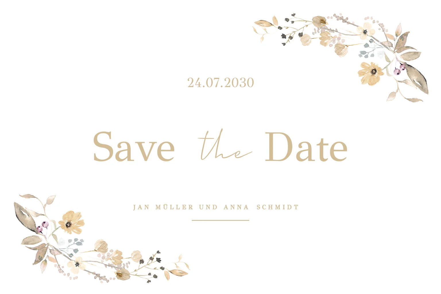 Das Design der von dir gewählten Karte wurde automatisch in andere Formate umgestellt. Wähle einfach deinen Wunschformat aus und platziere alle Texte und Elemente an der richtigen Stelle im Editor. Du hast Fragen oder dein Favorit steht nicht zur Auswahl? Dann kontaktiere uns bitte und wir werden uns gemeinsam darum kümmern!