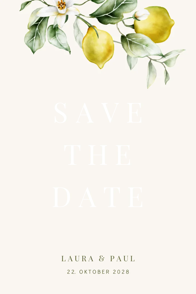 Sieh dir hier all unsere Hochzeitseinladungen mit Zitronen an.