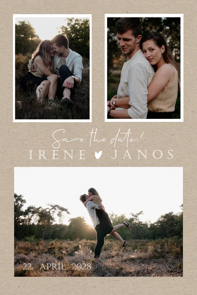 Der Termin für eure Hochzeit steht? Herzlichen Glückwunsch! Damit auch alle eure lieben Freunde und Verwandten an eurem großen Tag teilhaben können, solltet ihr so früh wie möglich Save-the-Date Karten versenden. Das kann ruhig ein Jahr oder noch länger vor der Hochzeit sein! Foto: @amarifilmsMelde dich für unseren Newsletter an und profitiere von exklusiven Angeboten, kreativen Ideen und Neuigkeiten aus unserer Produktwelt. Als Dankeschön für deine Anmeldung schenken wir dir einen kostenlosen Probedruck deiner Karte.