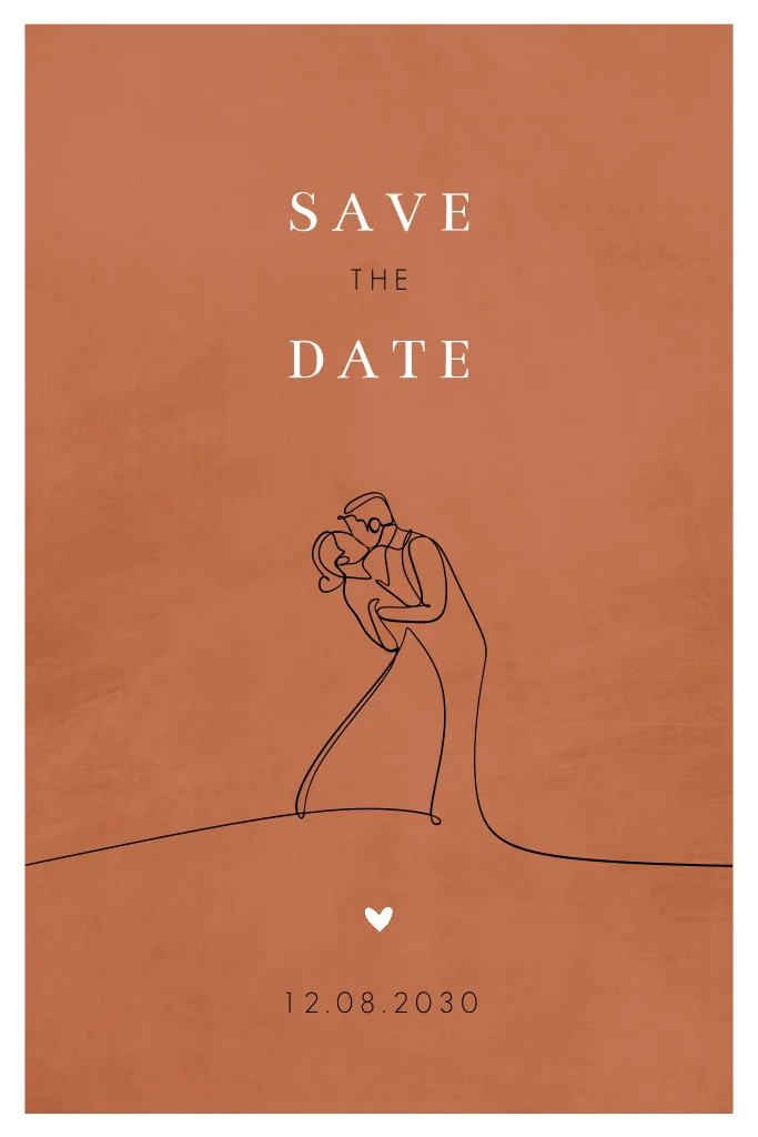 Save the date Karte mit gezeichnetem Paar im Terracottaton