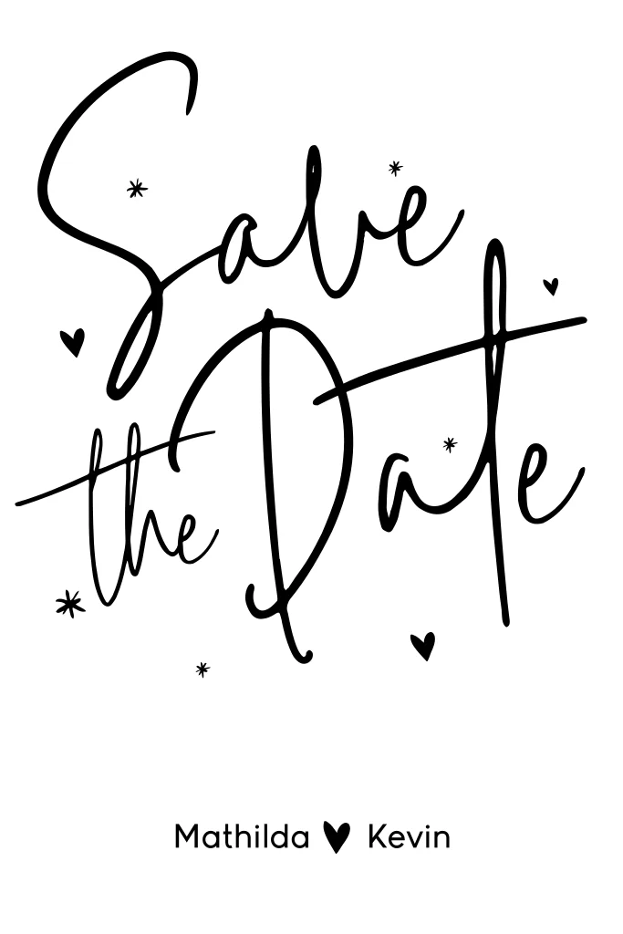 Schöne Save the Date Karte mit ausgefallener Schrift und Herzen